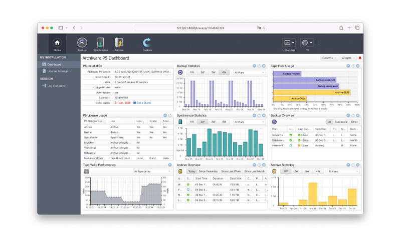 The Archiware P5 platform has compatibility with numerous storage hardware. P5 Archive and P5 Backup can be used with tape hardware by any manufacturer on the market. All modules support file servers as well as Direct Attached Storage, SAN and NAS, thus working with practically any type of disk storage.